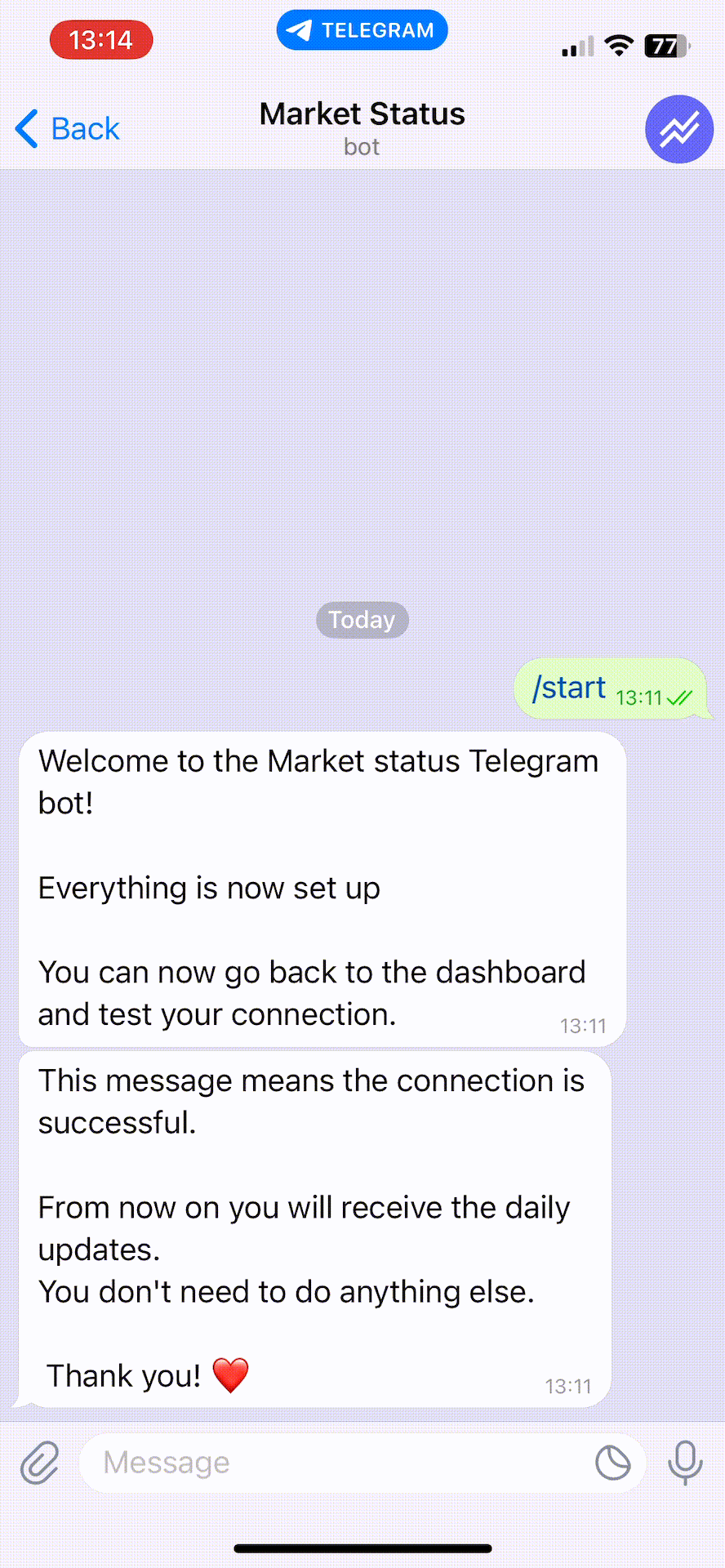 By leveraging the usage of automations, you can be up to date with the status of the market with the updates from the Market Snap bot, with zero effort.
